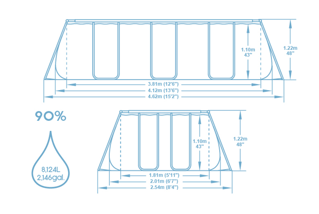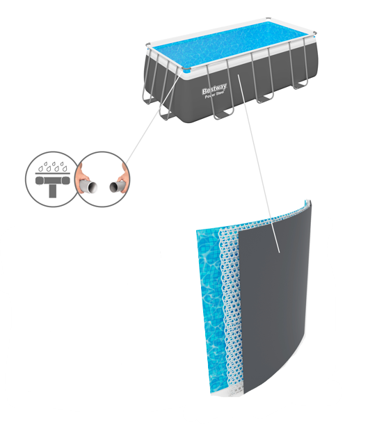 Les piscines tubulaires Bestway se composent d'une structure en acier galvanisé qui sert de support à un liner en PVC armé, pour donner à l'ensemble la meilleure des résistances.