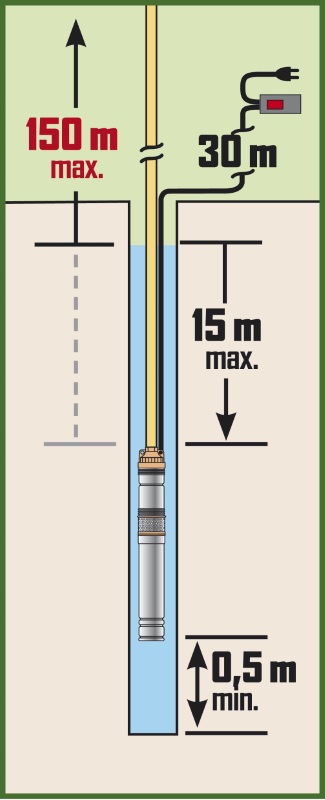 Elles conviennent aussi pour des points d'eau éloignés de moindre profondeur (puits, citernes enterrées, etc.). Il faut juste prévoir de laisser entre le bas de la pompe et le fond du puits (ou de son système de filtre s'il en est équipé) un minimum de 50cm, pour éviter que la vase ou les particules en suspension ne viennent obstruer sa grille de filtration.